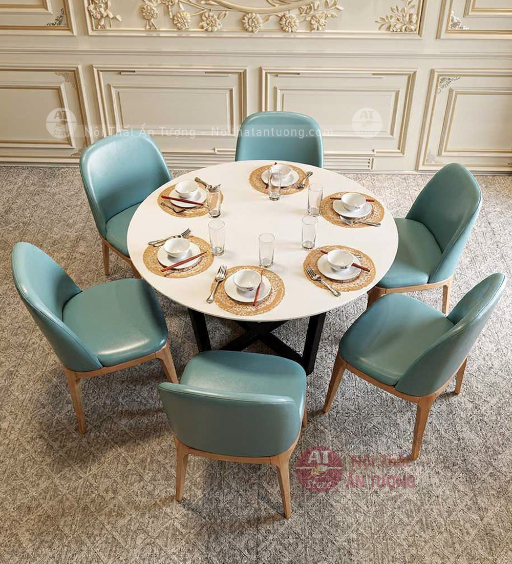 Bàn ăn tròn mặt đá 6 người sang trọng – Nội Thất Ấn Tượng