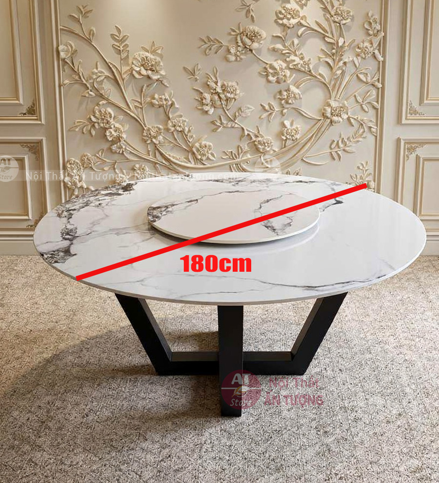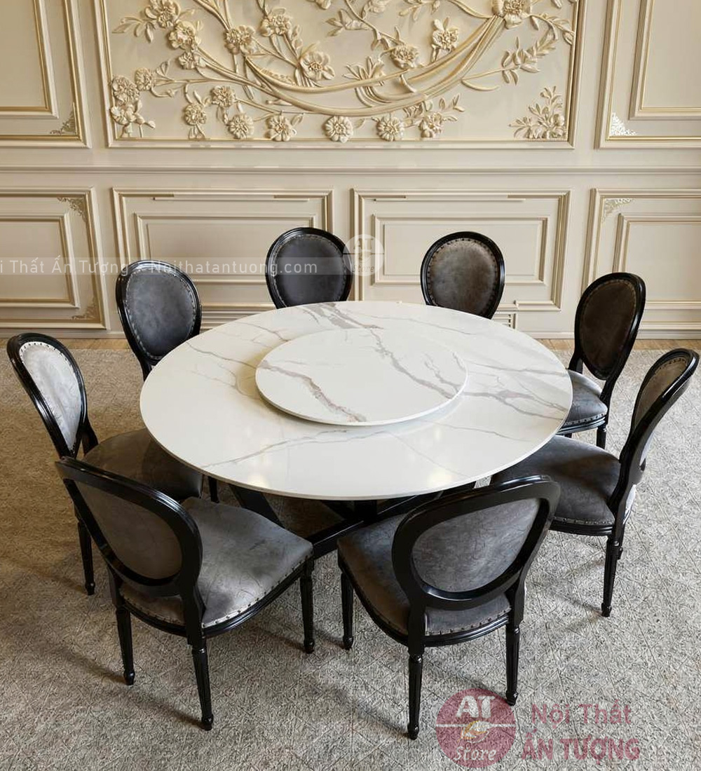 Bàn ăn tròn mặt đá có mâm xoay 8 người – Nội Thất Ấn Tượng