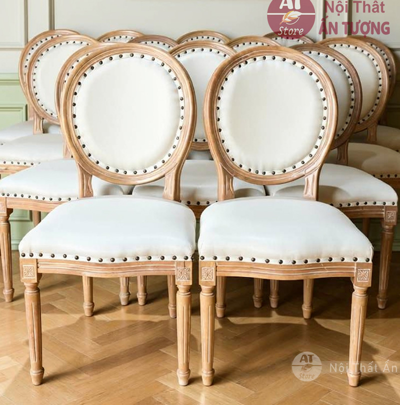 - Phong cách Louis cổ điển với chi tiết viền đinh đồng. Tạo không gian tinh tế cho bàn ghế nhà hàng, bàn ghế cafe.