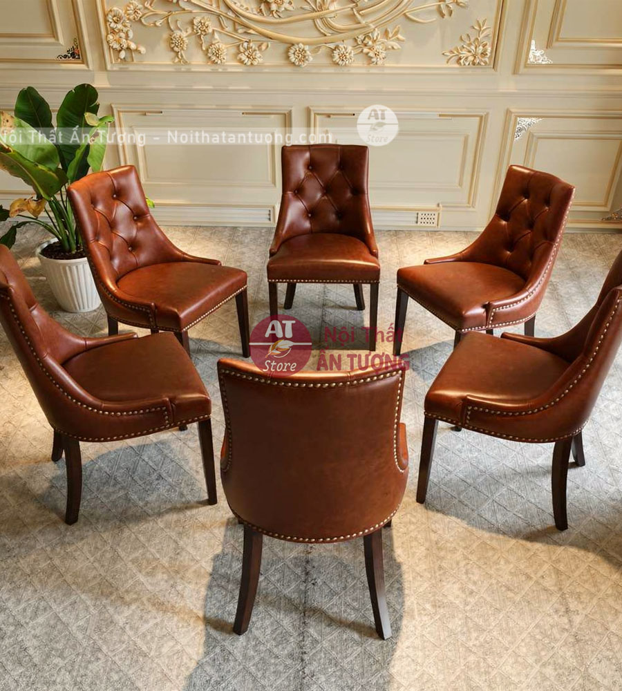 Bộ bàn ăn 6 ghế đẹp sang trọng bọc da màu ấm cúng AT7196
