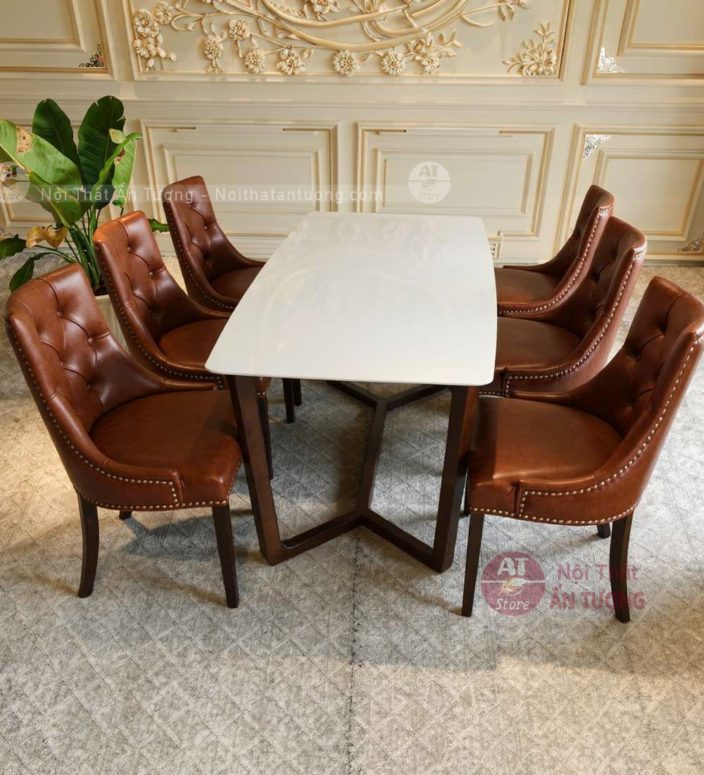 Bộ bàn ăn 6 ghế đẹp sang trọng bọc da màu ấm cúng