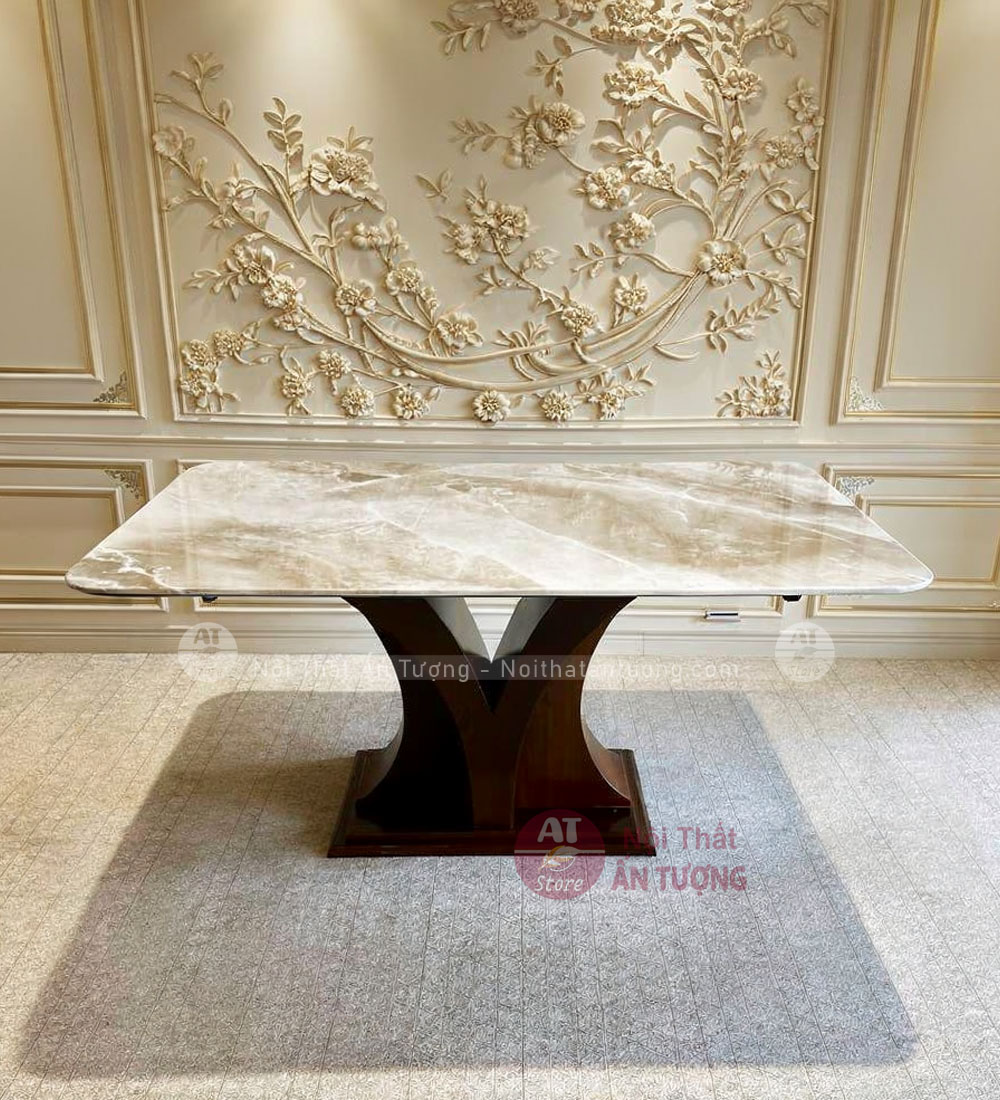Bộ bàn ăn mặt đá 6 người hình chữ nhật AT5136 được sản xuất tại Nội Thất Ấn Tượng