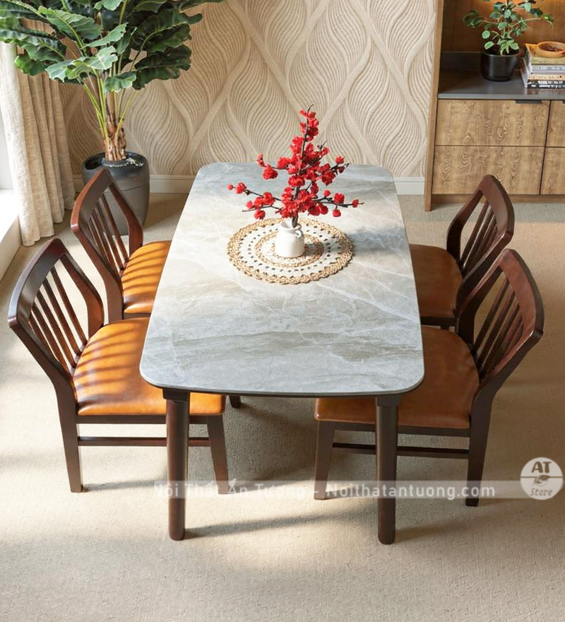 - Phù hợp cho phòng ăn gia đình 4 người, căn hộ chung cư, nhà phố nhỏ; không gian hiện đại ấm cúng.