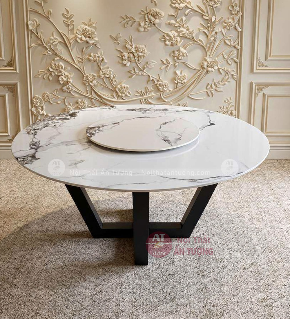 Bộ bàn ghế ăn tròn mặt đá có mâm xoay 8 người – Nội Thất Ấn Tượng