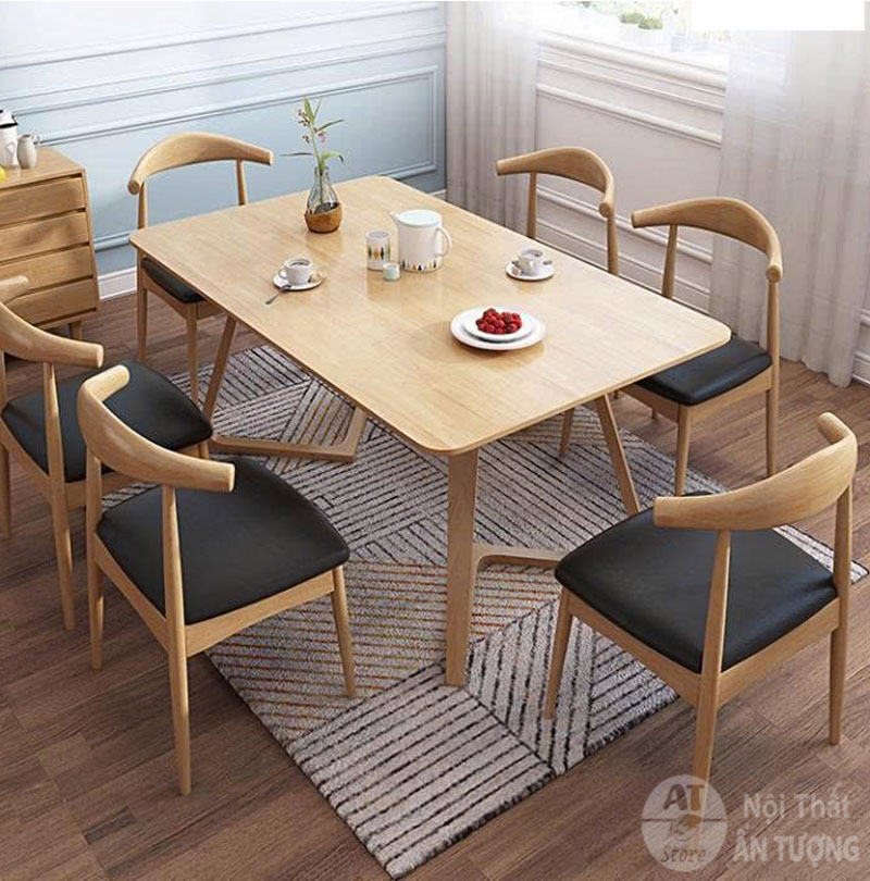 Bộ bàn ghế ăn 4 người cho gia đình gỗ tự nhiên AT3453 - Nội Thất Ấn Tượng